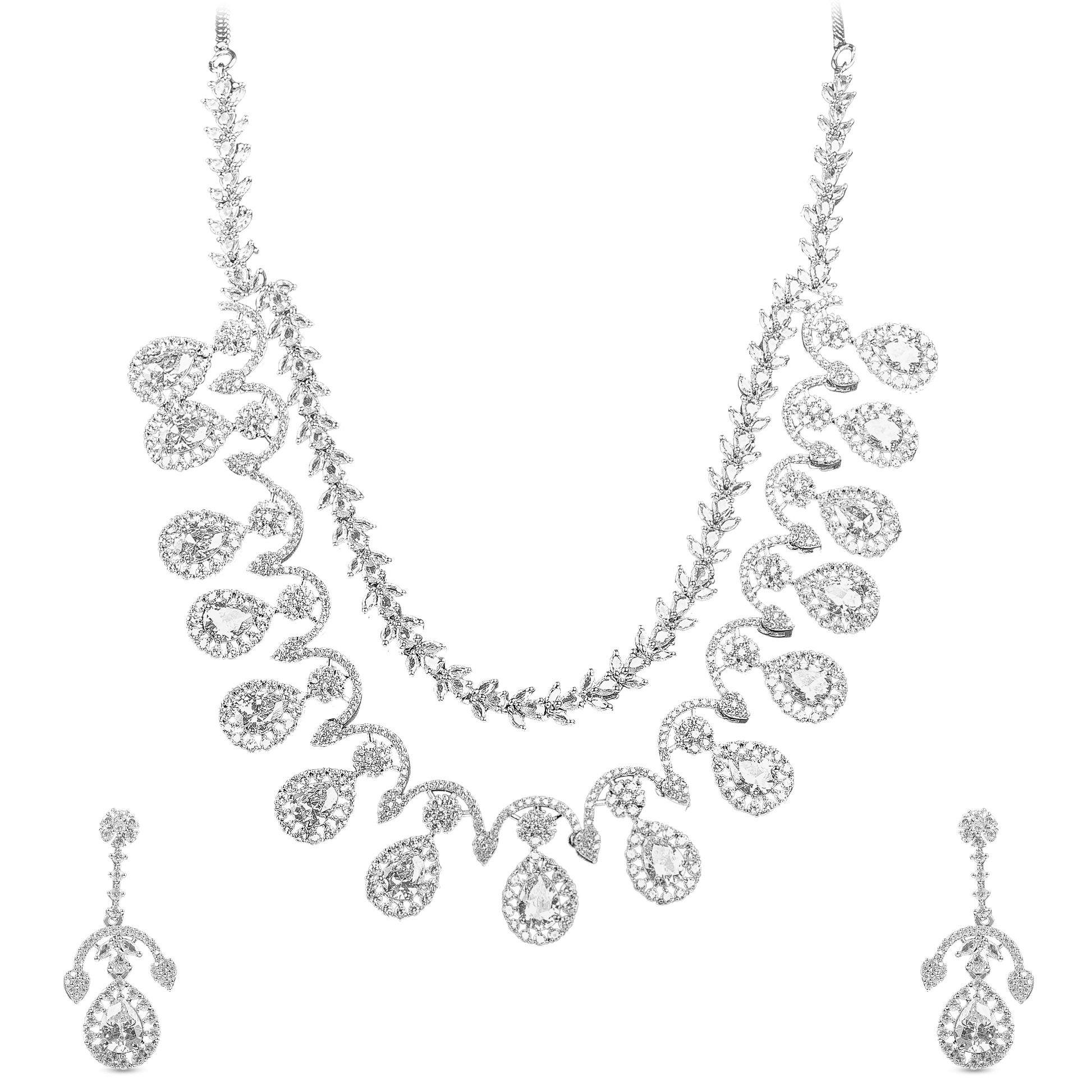 Make a statement with this elegant A.D. setting jewelry set, featuring a sleek double-line design. Embellished with shimmering zircon stones, it offers a dazzling touch of sophistication and grace. The refined craftsmanship ensures a polished finish that's perfect for both casual and festive looks. A versatile piece that adds charm to any outfit.