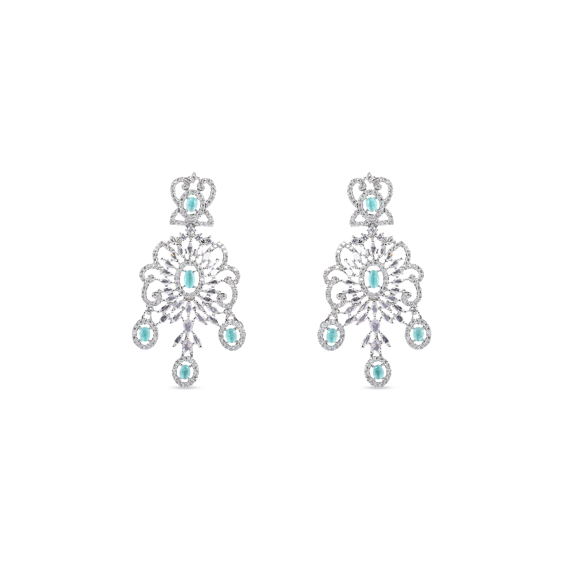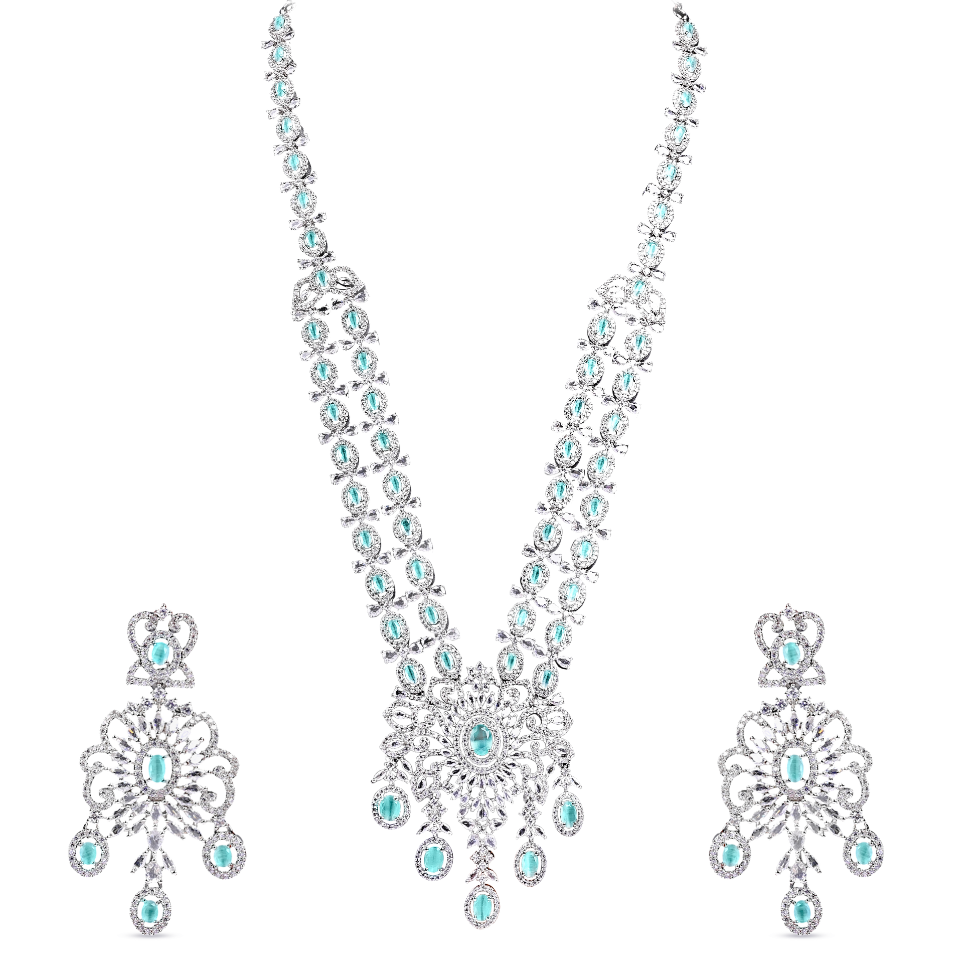 Refresh your jewelry collection with this elegant A.D. set featuring a chic double-line design. Adorned with sparkling white zircon and soothing mint-colored stones, it strikes the perfect balance between freshness and sophistication. The intricate detailing adds a touch of grace, making it ideal for festive occasions or elegant gatherings. A versatile piece that complements both modern and traditional looks.