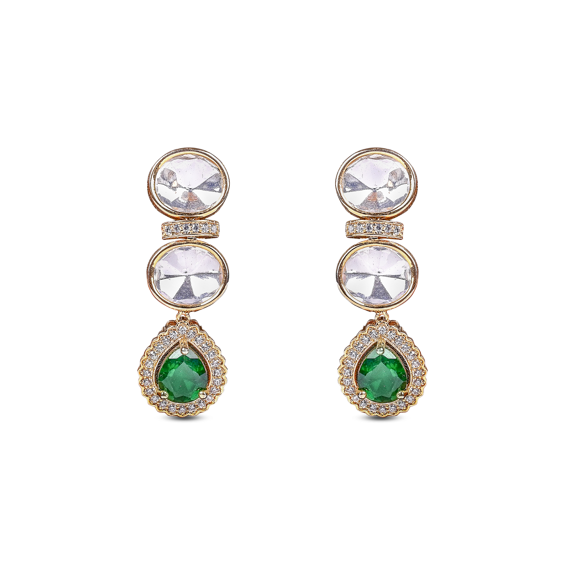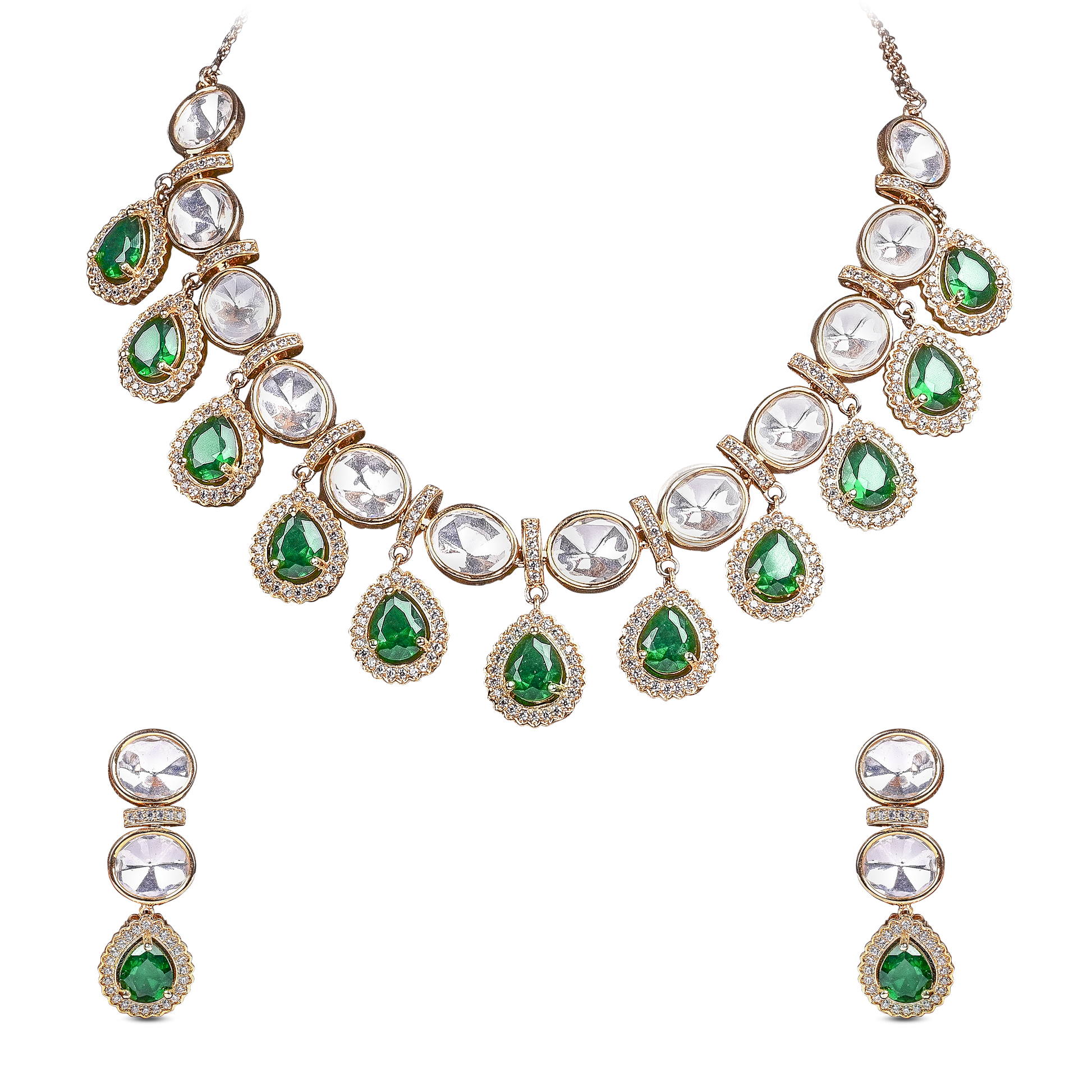 Embrace regal elegance with this full Moissanite set, featuring stunning emerald green stones that add a rich splash of color. The brilliant Moissanite sparkle perfectly complements the deep green hues, creating a luxurious and majestic look. Ideal for grand occasions and special celebrations, this royal set is designed to captivate and impress. A timeless treasure for your jewelry collection.
