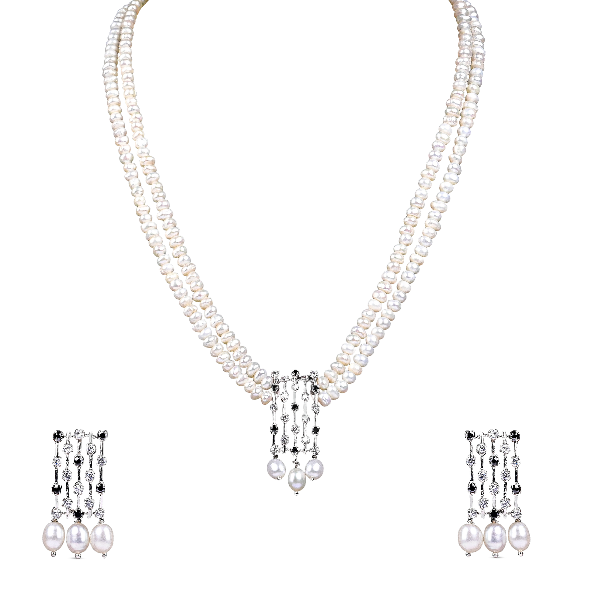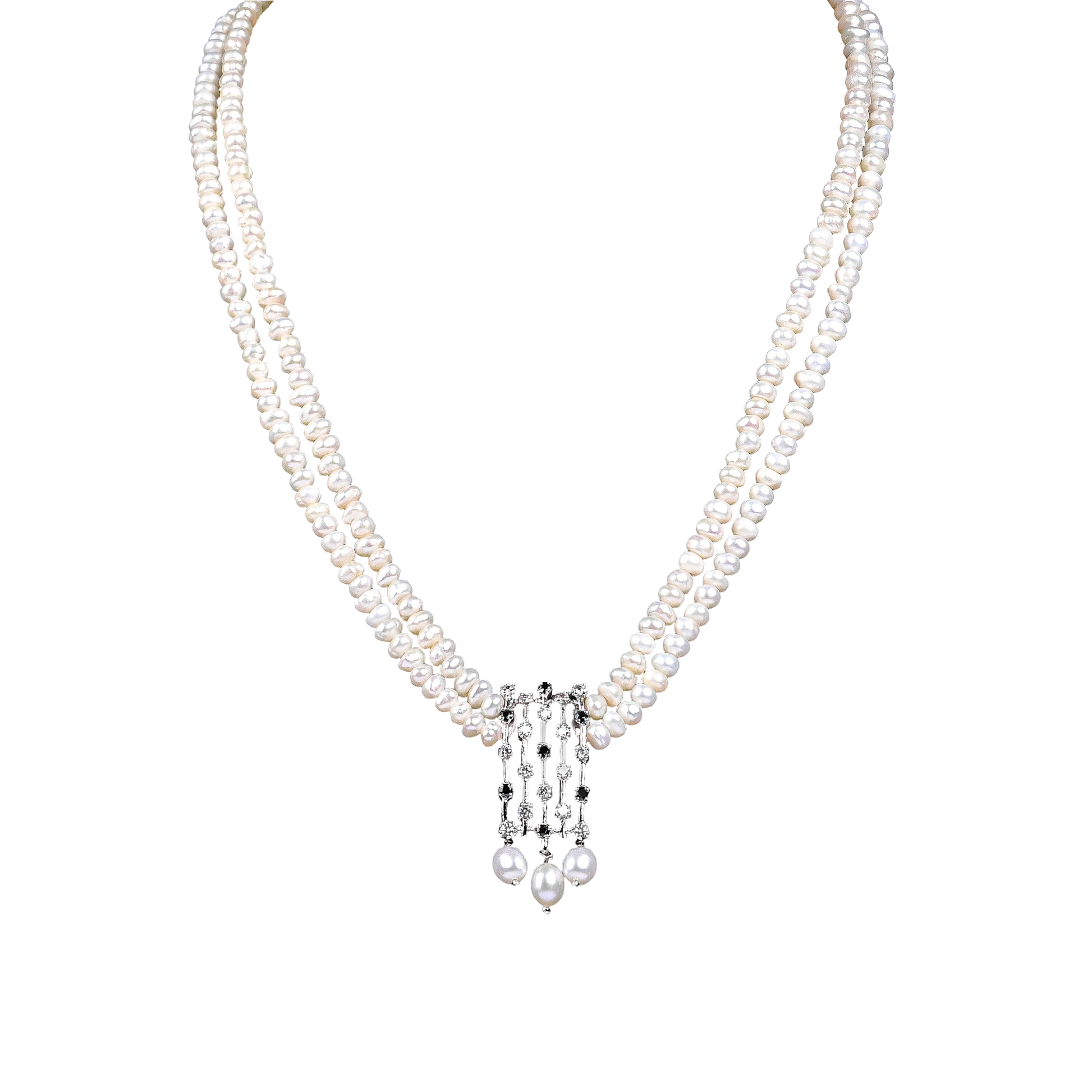 Discover the elegance of this authentic freshwater white pearl set, featuring two graceful strands that enhance its timeless beauty. Complemented by a sparkling white stone pendant, this set blends classic sophistication with subtle sparkle. Perfect for both formal occasions and everyday wear, it adds a touch of refined charm to any outfit. A must-have for pearl lovers seeking understated luxury.