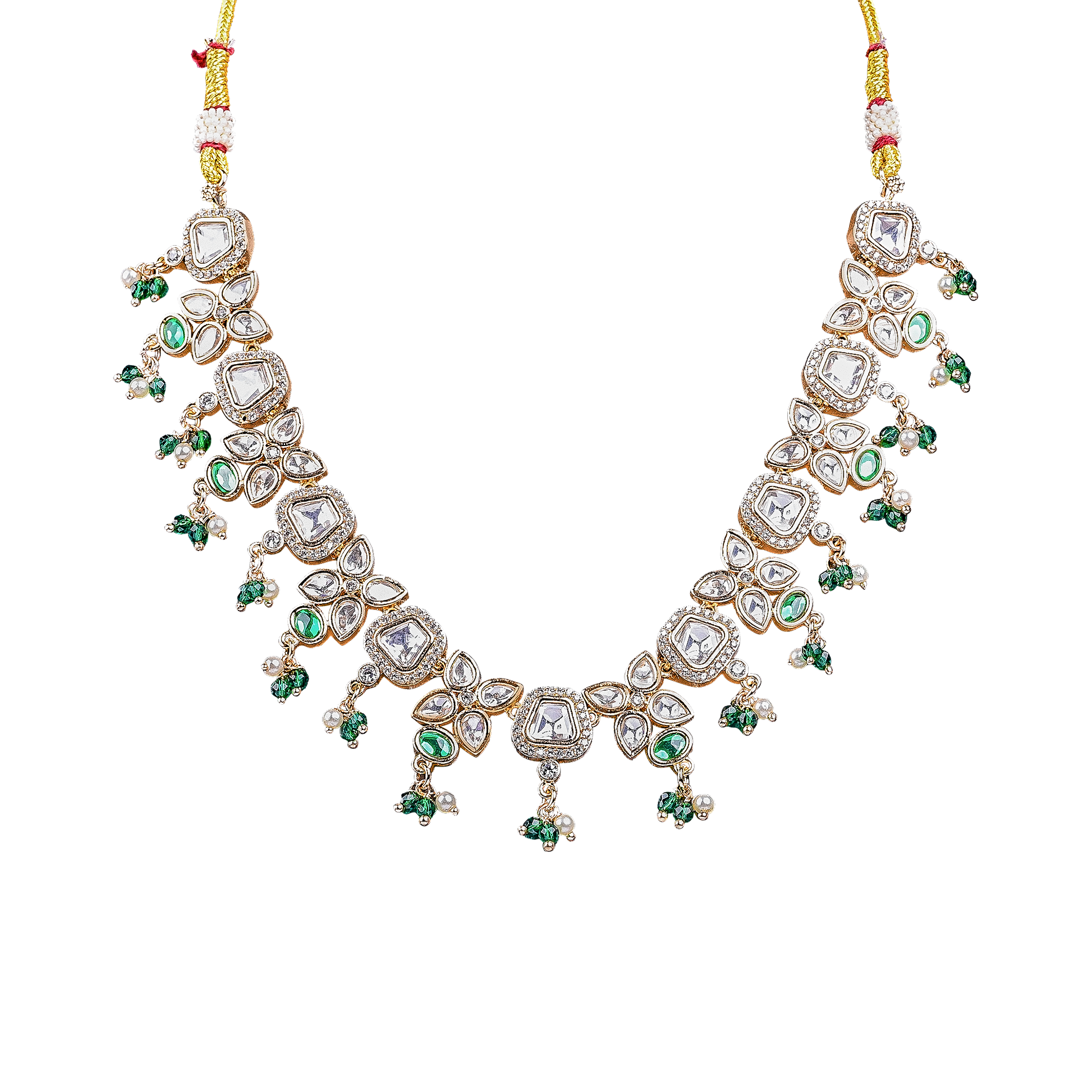 Step into royalty with this stunning full Moissanite setting set, adorned with striking emerald-colored stones. The brilliant sparkle of Moissanite combined with the rich green accents creates a look of opulence and grace. Perfect for grand occasions, this royal set is designed to captivate and impress. A luxurious addition to your finest jewelry collection.